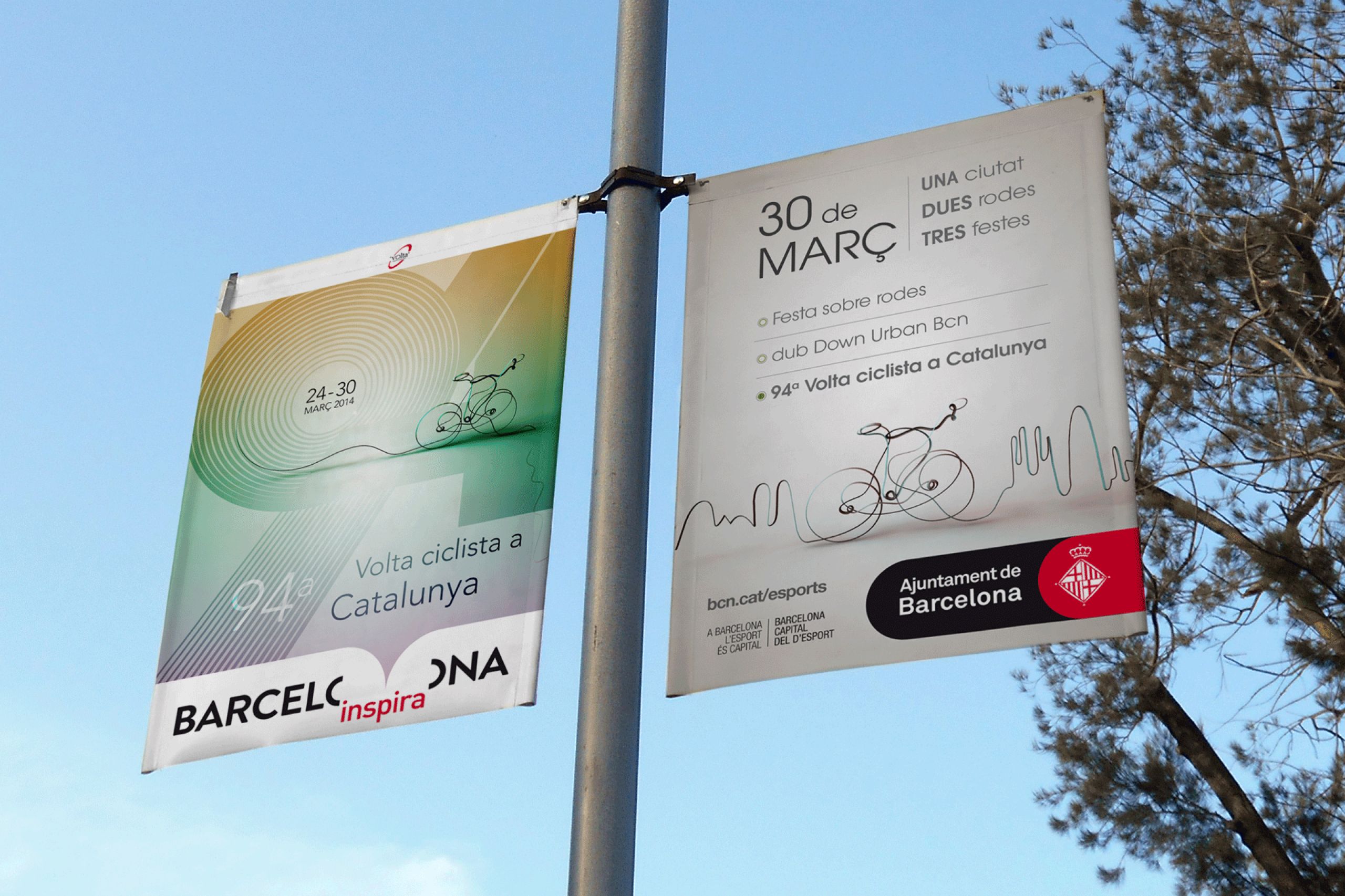 Campaña para el Departament de mobilitat de l’Ajuntament de Barcelona con el fin de incentivar el uso de la bicicleta por la ciudad. La gráfica, compuesta por una línea de trayecto extruida en 3D que dibuja una bicicleta, se adaptó a lonas, rollups y banners para web. También se utilizó la imagen para el Departament d’esports en diferentes eventos y actividades, como la “Volta ciclista a Catalunya” o la “Festa sobre rodes” entre otras.